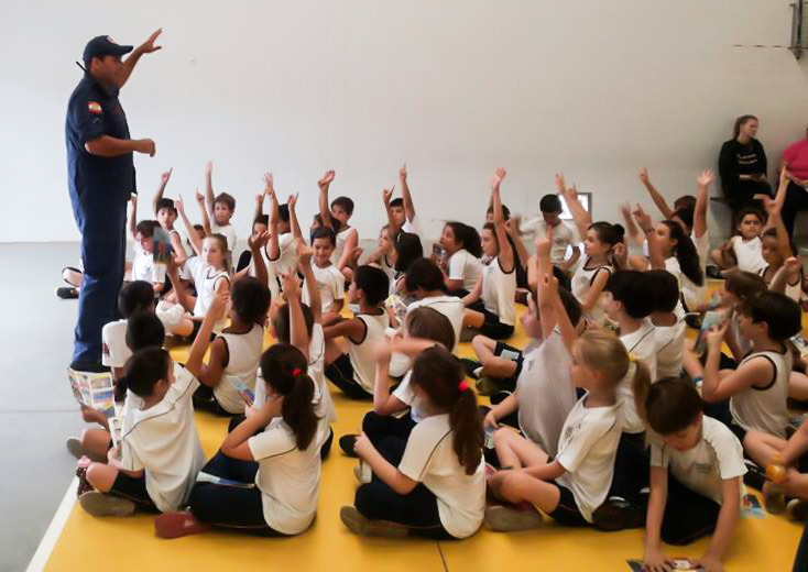 O Soldado Szpoganicz explica que os Bombeiros vão nas salas de aula e fazem brincadeiras com os alunos, de forma que eles interajam e se interessem pela conscientização, tanto de afogamentos, como do uso do filtro solar e também dos trotes para o 193. Também são distribuídos folders aos alunos.