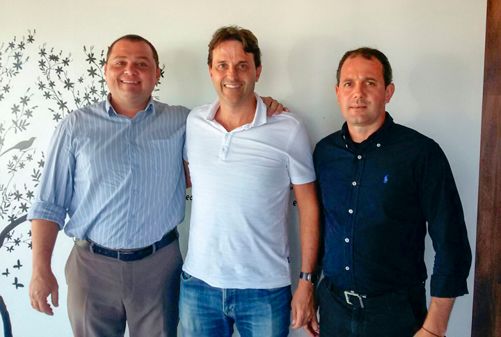 Vereador Marcelo Ferrari, com o presidente do PSB estadual, Paulinho Bornhausen e o prefeito Laércio Schuster Junior