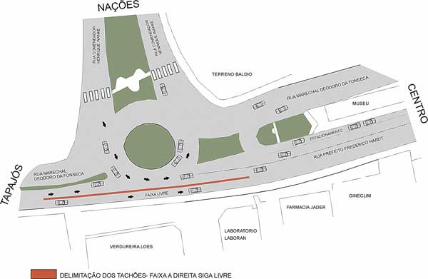 De acordo com informações do diretor do Demuttin, neste local, que situa-se em frente a Verdureira Loes, será diminuída a circunferência da rótula, facilitando a passagem dos veículos que vem do bairro das Nações, no sentido Centro, para que os veículos que se deslocam dos bairros Tapajós e Warnow, pela pista à direita, possam circular livremente. “Já os veículos que seguem dos bairros Warnow e Tapajós no sentido BR 470, que estiverem na pista à esquerda, devem esperar a passagem dos veículos que seguem dos bairros das Nações para o Centro”, informa Silva.