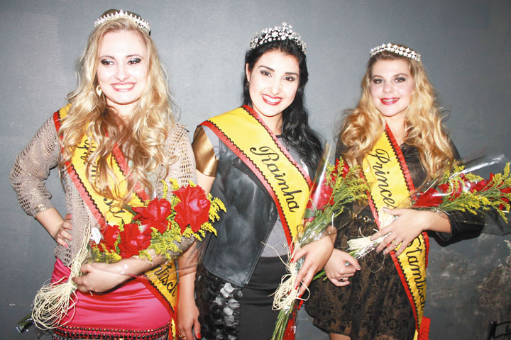 TIMBÓ – Na última sexta-feira, 14 de junho, a Biereck foi palco da escolha da rainha e princesas do Stammtisch Timbó 2013. Das nove belas candidatas, apenas três representarão o Stamm deste ano, são elas a rainha Deisi Cristina Roux, de 20 anos, 1ª Princesa Nicole Jandke, de 19 anos e 2ª Princesa Thaynara Siquela, de 17 anos.