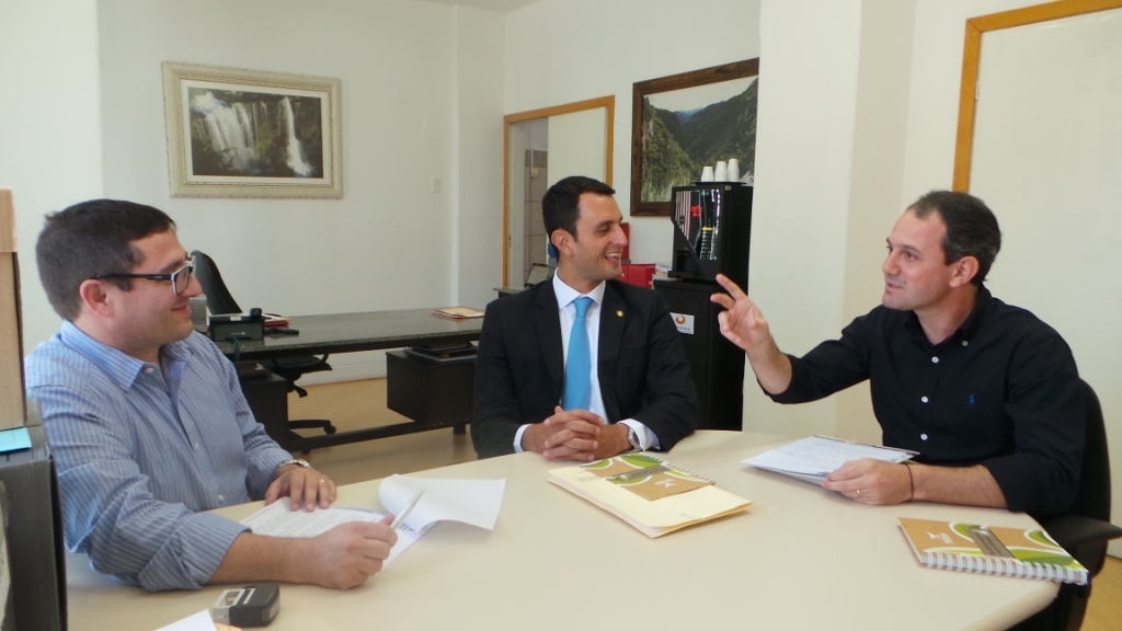 Presidente da Fatma (e) recebeu João Amin e o prefeito de Timbó, Laércio Schuster Junior (d)