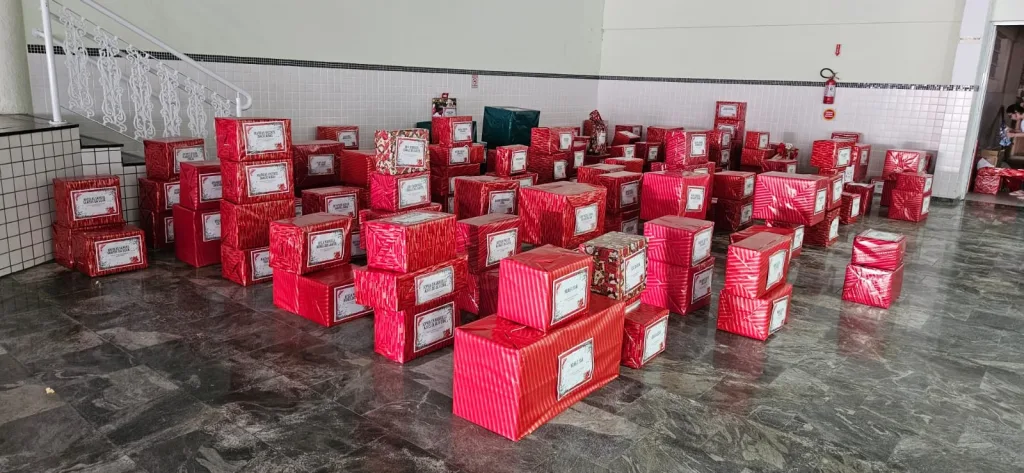 Em 2025, 67 famílias foram adotadas pela iniciativa, após uma criteriosa triagem realizada pelas coordenações dos NEIs de Timbó. O objetivo foi alcançar não apenas as crianças, mas também suas famílias, proporcionando um Natal mais digno e significativo.
