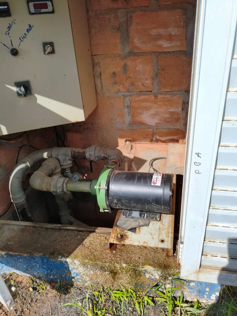 Na sexta-feira, dia 24 de abril, outra importante ação aconteceu no bairro Padre Martinho Stein, com a troca da bomba do booster localizado na rua Arnold Albrecht. O booster é um sistema responsável por aumentar a pressão e a vazão da água tratada na rede de distribuição, melhorando diretamente o fornecimento para os moradores da região.