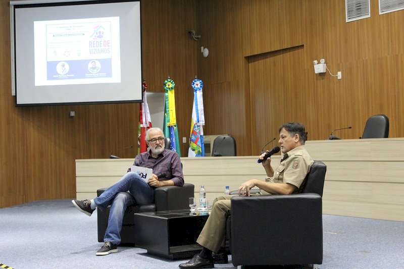 Após, foi iniciado um bate-papo entre o jornalista Carlos Henrique Roncalio e o coronel Gomes. Neste momento, foram tratadas questões sobre o novo cenário da segurança pública de modo geral, sobre a falta de efetivo para o combate à criminalidade e falta de mudanças das políticas públicas, dentre outros assuntos relacionados. O coronel destaca ainda que apesar dos percalços, nossa região apresenta bons resultados. “Pegando a nossa região, nós estamos, apesar de todas as dificuldades, demonstrando a qualidade e comprometimento do nosso policial, a participação da sociedade organizada e, utilizando a nosso favor a inteligência e a tecnologia, temos produzido bons frutos”