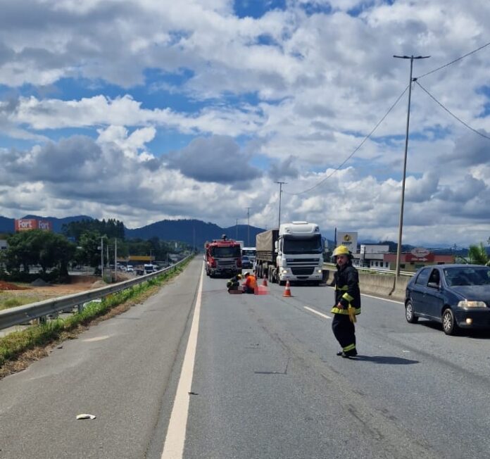 Na tarde desta sexta-feira, dia 4, um grave acidente de trânsito deixou uma vítima fatal na BR-470, sentido ao município de Rodeio, a cerca de 300 metros do acesso a Indaial. O Corpo de Bombeiros Voluntários de Indaial foi acionado para atender a ocorrência que envolveu uma moto e um caminhão.
