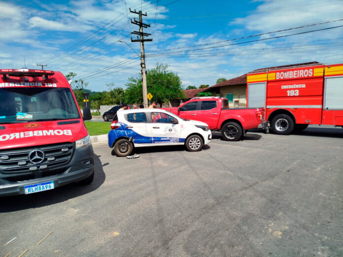 O Corpo de Bombeiros de Timbó (1º PBM/2º CBM/3º BBM) atendeu, na tarde de 17 de fevereiro, um acidente de trânsito na rua Blumenau, envolvendo um Nissan Frontier e um Fiat Mobi.
