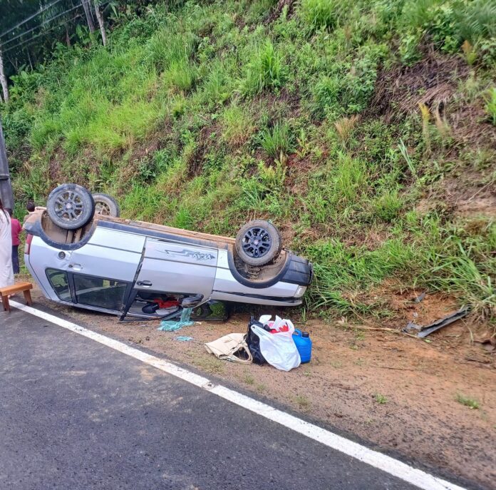 O Corpo de Bombeiros Militar da cidade atendeu a ocorrência no bairro Barra São João. No local, a guarnição encontrou um carro Fiat Uno capotado no acostamento da via.