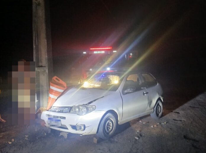 No local, foi constatado que se tratava de uma colisão de um veículo Palio, com placas do Mercosul, em um poste. Três pessoas estavam no carro.