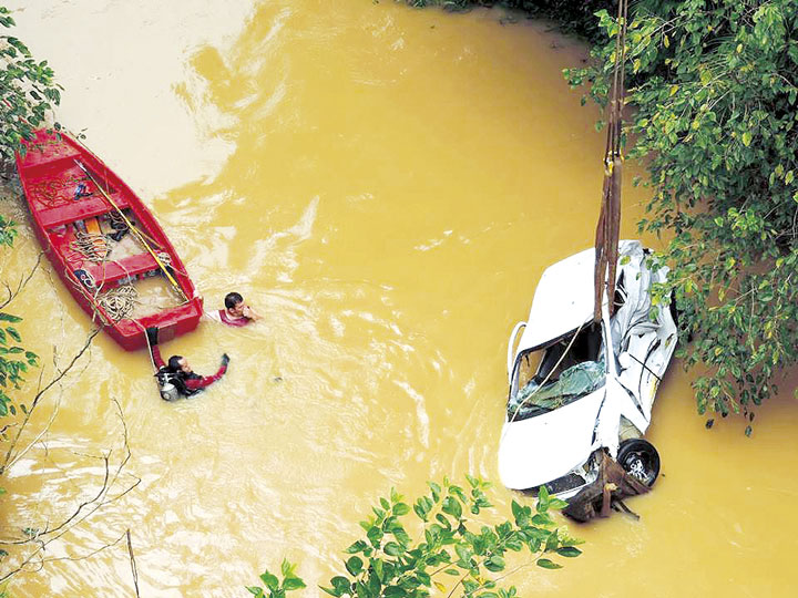 GASPAR – Um veículo Celta, com placas de Blumenau, foi retirado por um guincho do Ribeirão Gaspar Grande, em Gaspar, às 14h30min de domingo, dia 12. Segundo o Corpo de Bombeiros, o carro caiu da ponte por volta das 2h, após colidir com um Palio, com placas de Pitanga, na rua Nereu Ramos, no Centro. Até o fechamento desta edição, apenas um corpo foi localizado.
