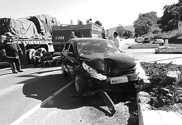 Carro com cinco pessoas roda na pista e causa acidente