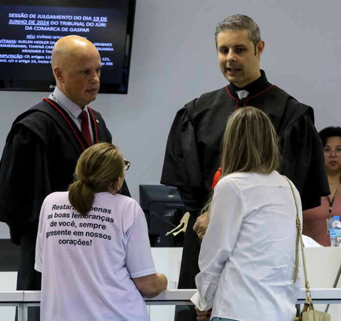 A frase “Restaram apenas as boas lembranças de você, sempre em nossos corações” estava nas camisetas dos familiares de Amanda Grabner, vítima de um acidente. Após cinco anos de luta, a família de Amanda esteve no Fórum de Gaspar para o julgamento de Evanio Wylyan Prestini, que durou 16 horas. Prestini foi condenado a oito anos de reclusão, seis meses e 20 dias de detenção, e teve sua habilitação suspensa por dois anos e meio. Ele foi responsabilizado por dois homicídios com dolo eventual e três lesões corporais, além de embriaguez ao volante. O Ministério Público de Santa Catarina (MPSC) considerou o resultado satisfatório, destacando o trabalho das promotorias de Justiça e da Polícia Civil desde 2019.