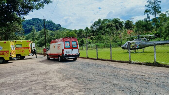 Após avaliação, o paciente foi imobilizado e conduzido ao Hospital Santa Isabel de Blumenau pela equipe do helicóptero Águia da Polícia Militar.