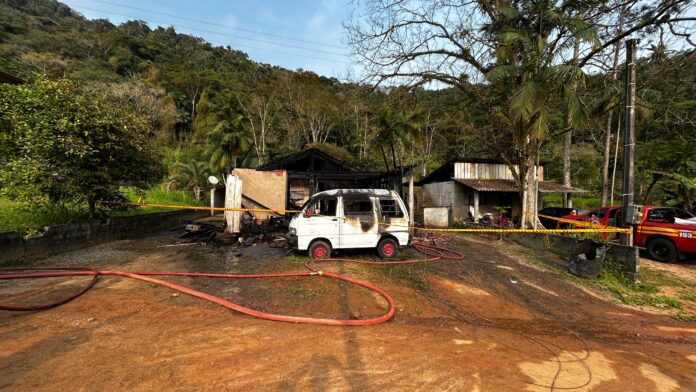 Um incêndio atingiu uma residência na rua Atilio Leitempergher em Rio dos Cedros, na manhã de domingo, dia 1º de setembro.
