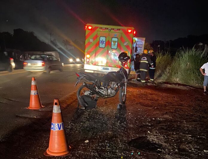 Um acidente envolvendo um carro e uma moto mobilizou a equipe do Corpo de Bombeiros Voluntários de Indaial (CBVI) na noite de domingo, dia 1º de dezembro, no Km 63, da BR-470, bairro Encano do Norte.