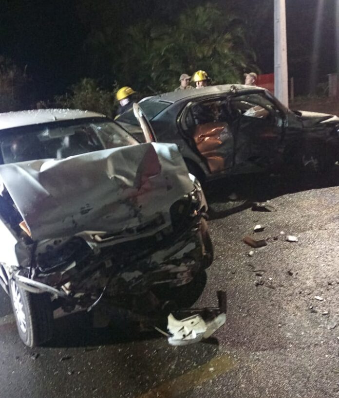 No local, os bombeiros constataram que se tratava de uma colisão entre um veículo Voyage e um veículo Palio.