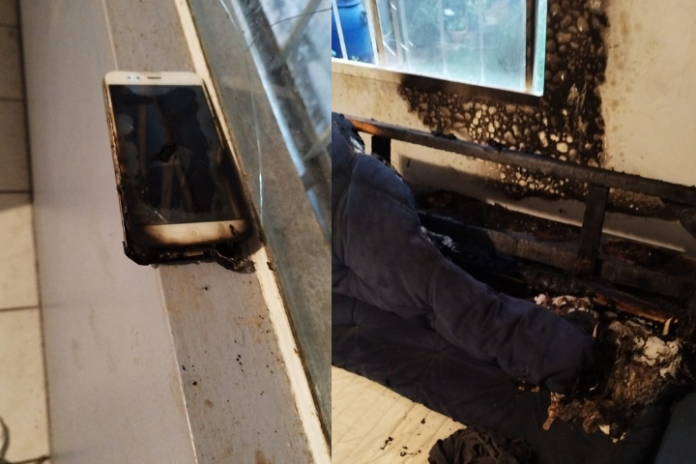 No local, foi constatado que o fogo teve início em um celular que estava carregando, conectado na tomada.