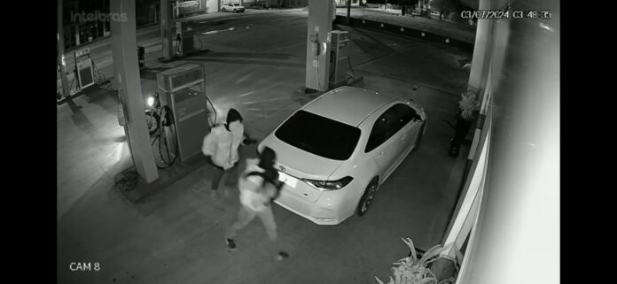 Conforme a Polícia Militar, dois suspeitos encapuzados, quebraram a porta de vidro de dois Postos de Combustível, utilizando uma pedra e furtaram uma certa quantia em dinheiro, de um estabelecimento foi furtado R$ 300 reais e do outro R$ 450 reais, além de uma mochila, cinco litros de bebida destilada, 72 carteiras de cigarro e 30 isqueiros.