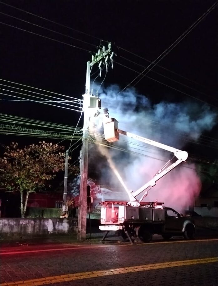 Desta forma, os bombeiros utilizaram um extintor de pó químico. Posteriormente, o local foi deixado em segurança para que o equipamento fosse trocado pela Celesc.
