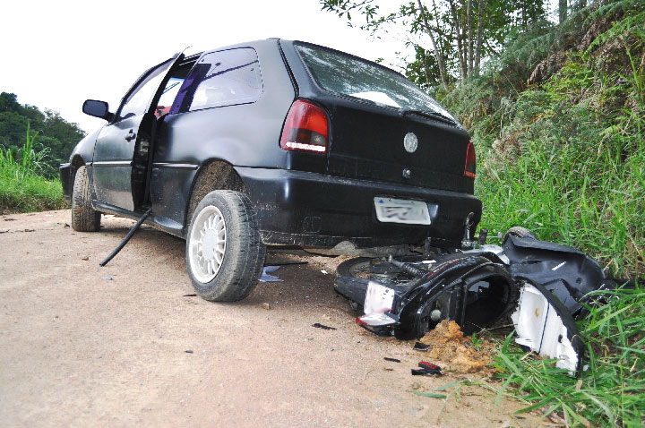 TIMBÓ – A Polícia Militar de Timbó com um mandado de prisão em aberto, para um senhor residente na Tifa Nardeli, em função do não pagamento da pensão alimentícia, foi até a residência do mesmo, na tarde do dia 2 de julho. Ao notar a chegada da Polícia, em sua residência, o acusado pegou seu filho e fugiu de carro, um Gol, com placas IEC 3111, de Pomerode. Ao chegar a uma curva ele colidiu com uma Honda Biz, 125 preta, com placas MHJ 4103, de Pomerode, que era conduzida por Adriana Neckel Soares.