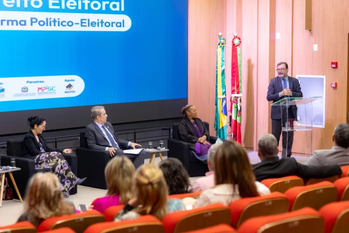 O debate sobre Direito Eleitoral no Congresso Catarinense ganhou força com a presença de ministros e ex-ministros do Tribunal Superior Eleitoral (TSE). Segundo informações divulgadas pelo Tribunal Regional Eleitoral de Santa Catarina (TRE-SC), o evento discutiu processo eleitoral, cotas de gênero e desafios estruturais da Justiça Eleitoral. A programação, realizada no auditório do Ministério Público de Santa Catarina (MPSC) e transmitida pelo YouTube do TRE-SC, reuniu especialistas para ampliar a compreensão sobre reforma político-eleitoral.
