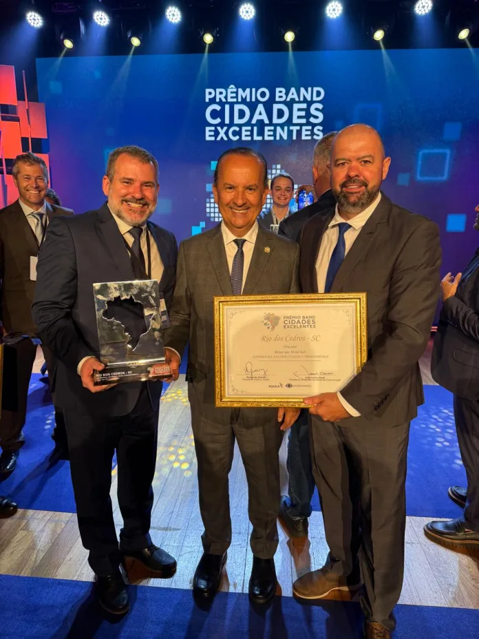 Rio dos Cedros conquista 1º lugar do Brasil em excelência na gestão pública e entra para a história ao alcançar a melhor colocação nacional no Prêmio Band Cidades Excelentes 2025. O município venceu na categoria cidades com até 30 mil habitantes, no pilar Governança, Eficiência Fiscal e Transparência, superando os 5.570 municípios brasileiros avaliados.