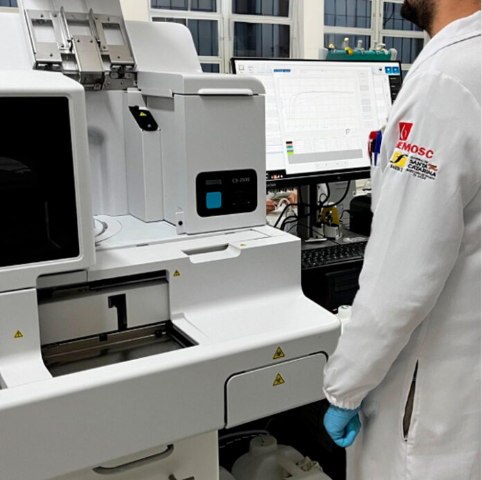 O Centro de Hematologia e Hemoterapia de Santa Catarina (HEMOSC), unidade do Governo do Estado, possui o único laboratório estadual que realiza o teste de Agregação Plaquetária. Para a realização do exame, o Hemosc conta com um novo coagulômetro. O equipamento monitora a atividade das plaquetas, que desempenham um papel fundamental na coagulação sanguínea, reduzindo o risco de sangramentos e participando do processo de cicatrização.