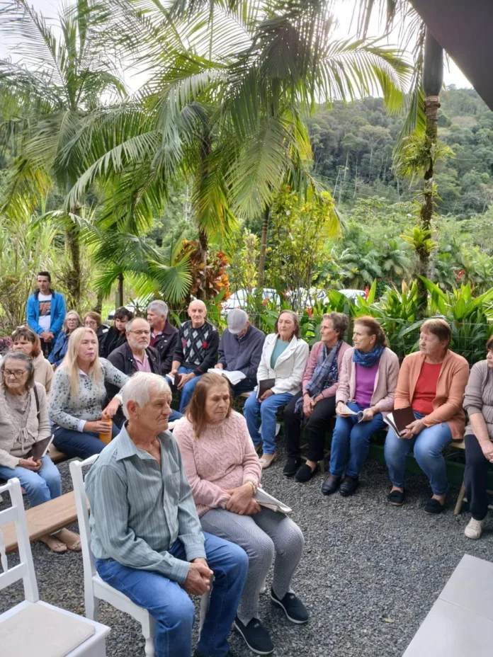 Após a missa, os fiéis desfrutaram de um café da tarde especial na casa da família Fachini. Em meio ao clima frio, as diversificadas cucas, bolos, doces e strudels foram muito apreciados. As conversas animadas e a alegria preencheram o ambiente, fortalecendo os laços da comunidade.